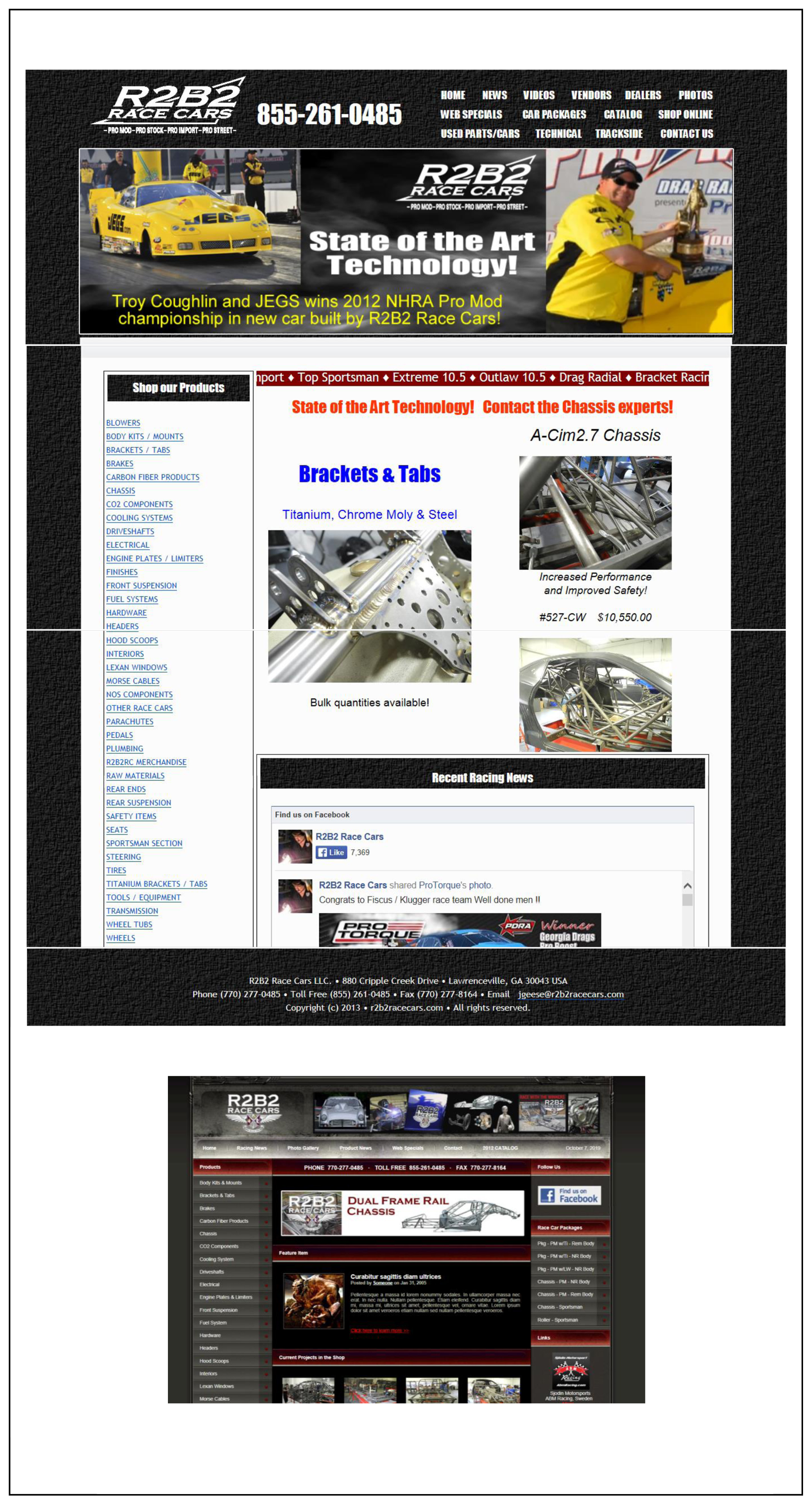 BUSINESS OVERVIEW: Race car designer and builder. The website includes 120-page parts catalog. Customers are directed to facebook for car development update photos.