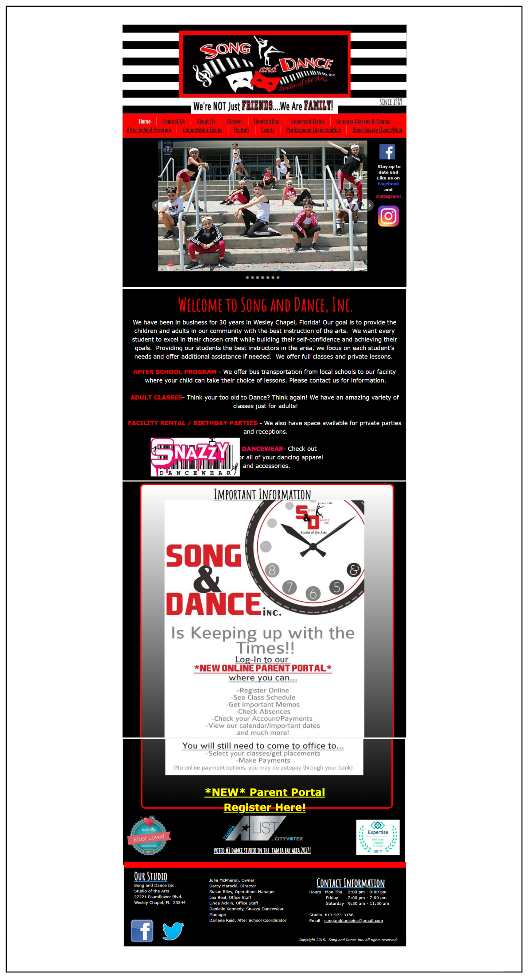 BUSINESS OVERVIEW: 32-page website designed for dance studio, afterschool program and banquet facility.